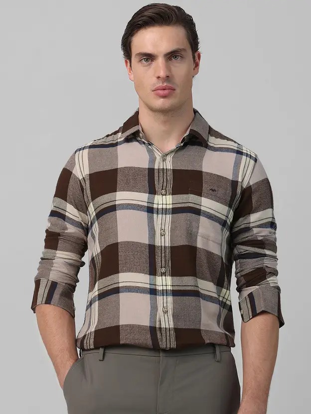 Men Slim Fit Checkered Spread Collar Casual Shirt