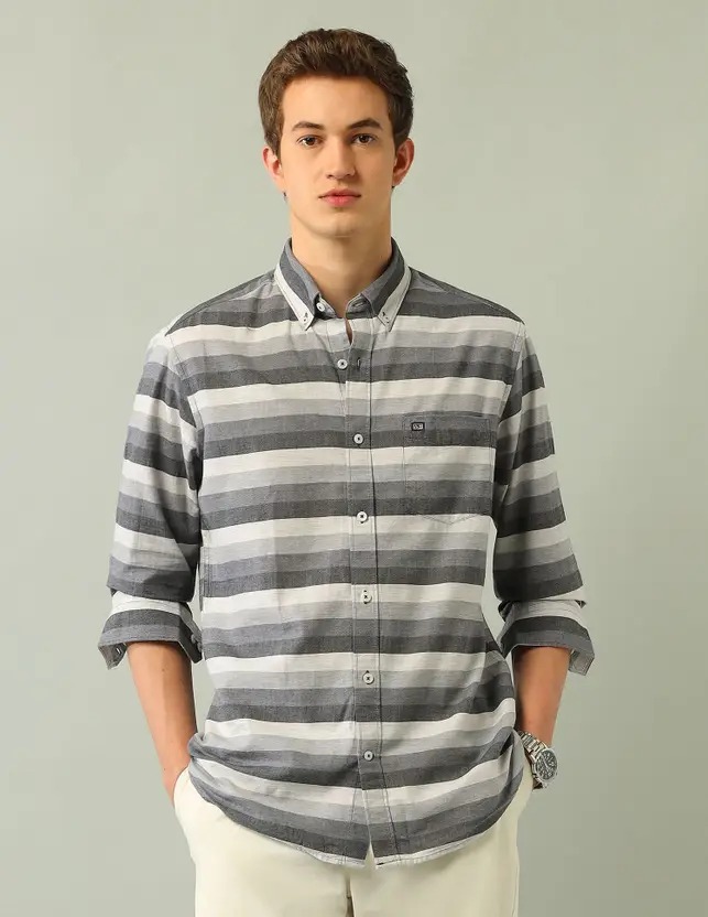 Men Slim Fit Striped Button Down Collar Casual Shirt