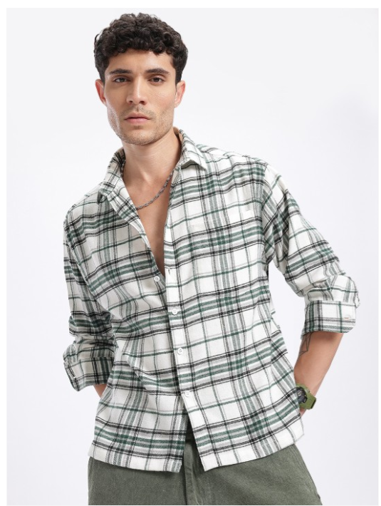 Flannel Weave Checked Relaxed Fit Shirt