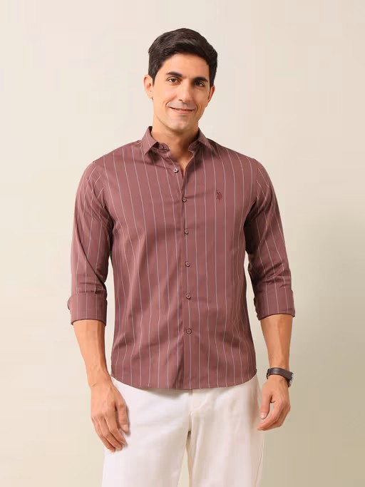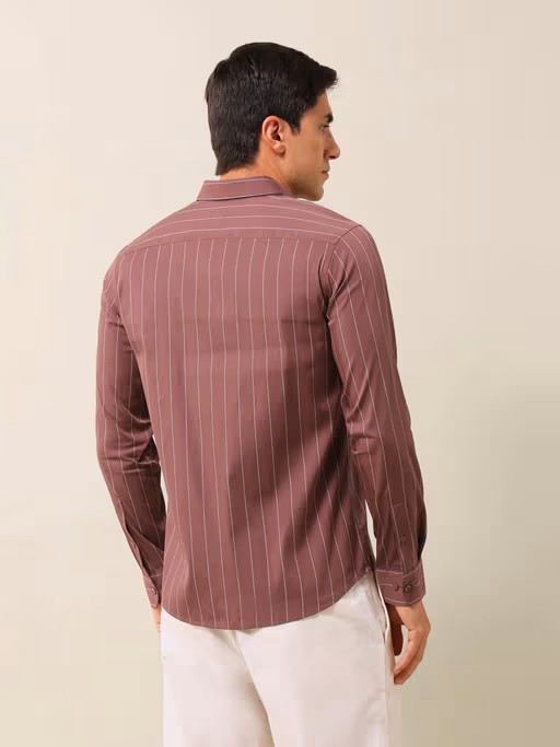 Stripes Pink Full Sleeves Collar Neck Shirt