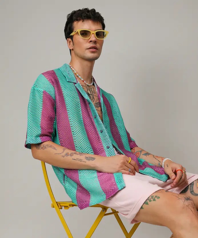 Men Oversized Fit Striped Spread Collar Casual Shirt
