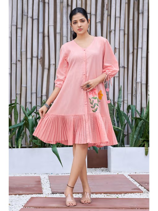 Enhance your style this season with this pink casual wear dress from Curvy Lane. Crafted from breathable fabric, it features an elegant design and offers exceptional comfort. Pair it with heels and minimal jewellery for a chic appearance.