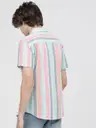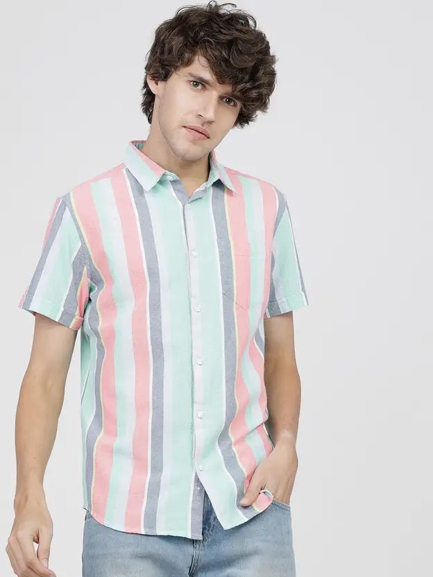 Men Slim Fit Striped Cut Away Collar Casual Shirt