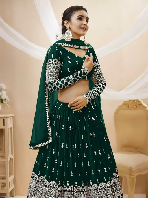 Re-Define Your Style In The Beautifully Embroidered Lehenga. Match It With A Clutch And A Pair Of Heeled Sandals And You Are Ready To Slay. Size Fits Up to 44 Inch