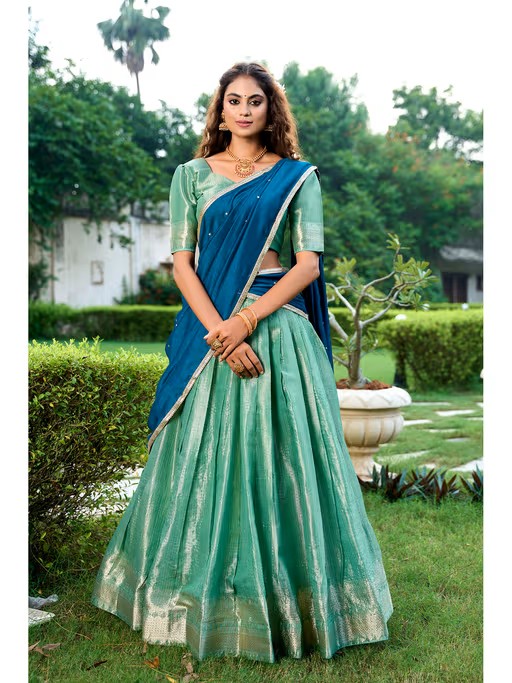 Stitch your style with this free size lehenga set from LooknBook Art. Made from high quality kanjeevaram, it features looknbook-art-green-woven-stitched-lehenga-with-unstitched-blouse-and-dupatta-set-of-3 closure and 1 pattern along with block after info column & use config design. Pair it with minimal jewellery to complete your ensemble.