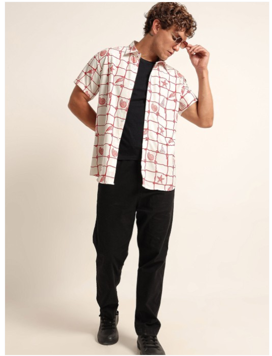White windowpane checks printed opaque Casual shirt ,has a spread collar, button placket, na pocket, short regular sleeves, curved hem