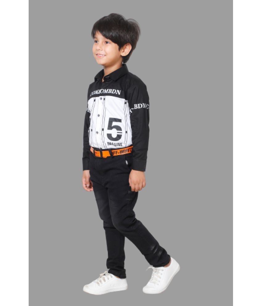 Stylish kids’ black cotton shirt and stretch denim jeans—durable, comfortable, and perfect for everyday wear.