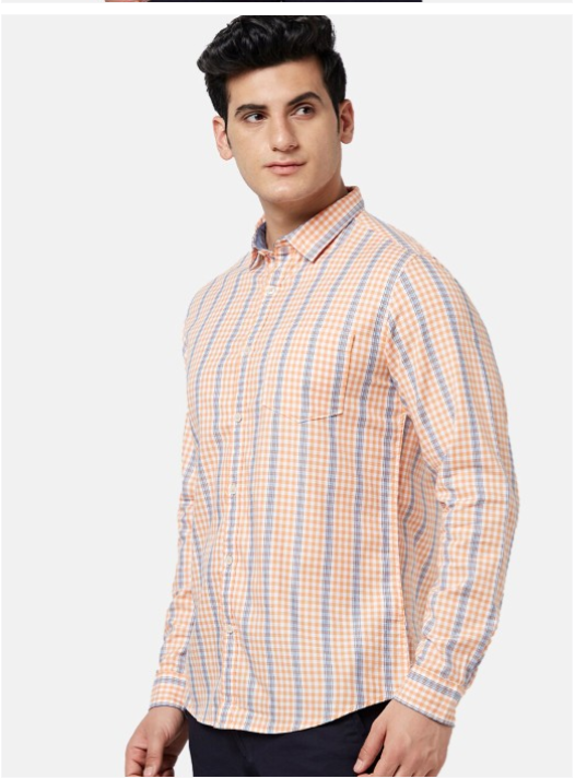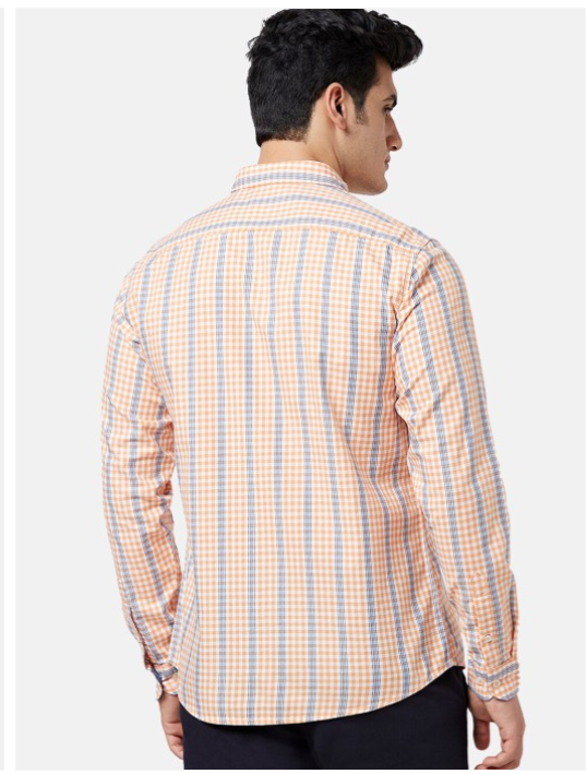 Orange, white & blue checked opaque Casual shirt ,has a spread collar, button placket, 1 pocket, long regular sleeves, curved hem