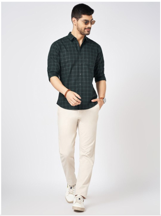 Green other checks solid opaque Casual shirt ,has a spread collar, button placket, 1 pocket, long regular sleeves, curved hem
