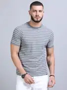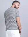 Men Striped Round Neck Cotton Blend Grey T-Shirt