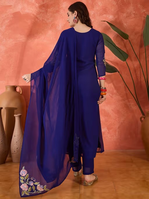 KVS Fab Women Blue Embroidered Kurta with Pant and Dupatta