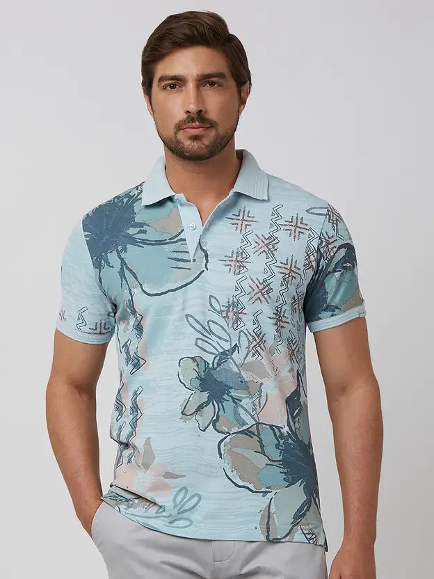 Men Printed Cotton Light Blue T-Shirt