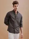 Men Slim Fit Striped Mandarin Collar Casual Shirt
