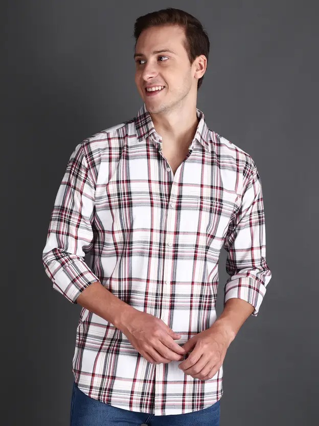 Men Tailored Fit Checkered Spread Collar Casual Shirt