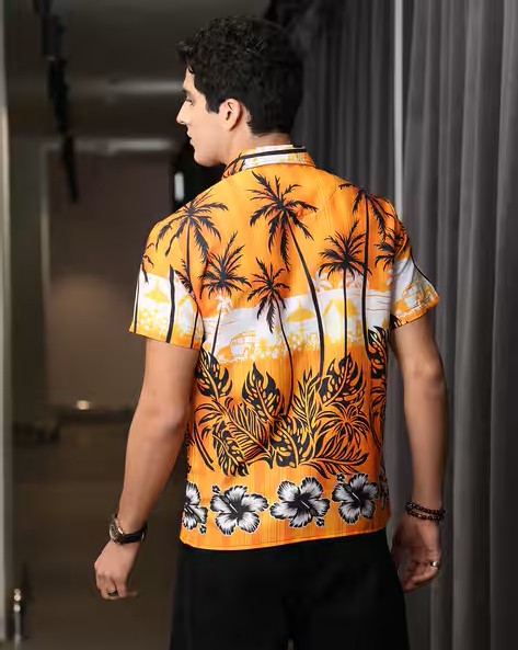 Shein Spread Collar Short Sleeves Tropical Shirt