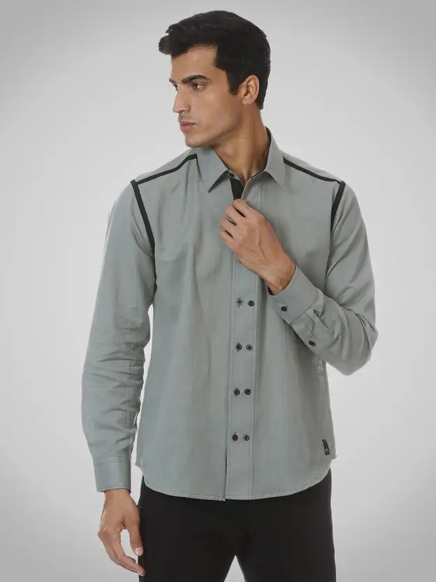 Men Regular Fit Solid Spread Collar Casual Shirt