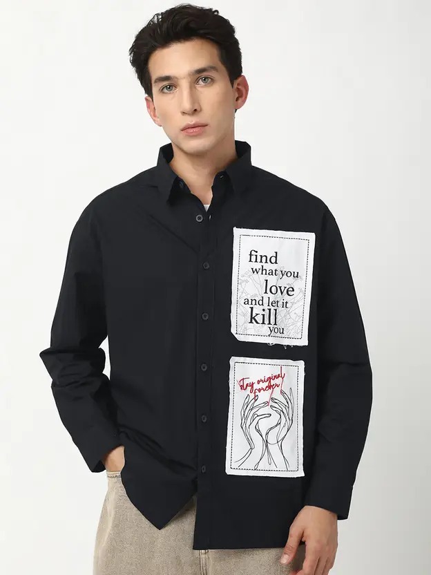 Men Oversized Fit Graphic Print Spread Collar Casual Shirt