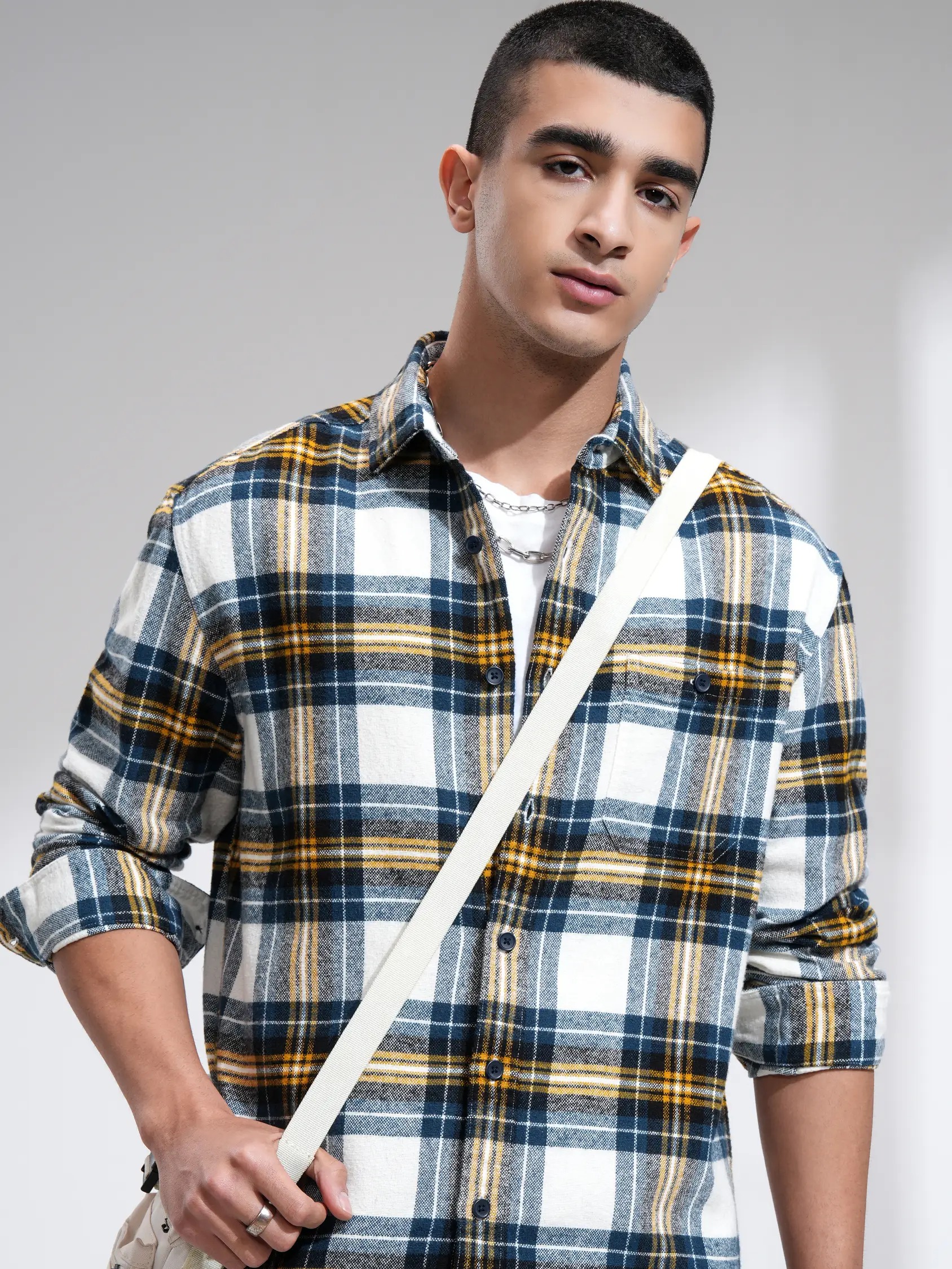 Men Oversized Fit Checkered Cut Away Collar Casual Shirt