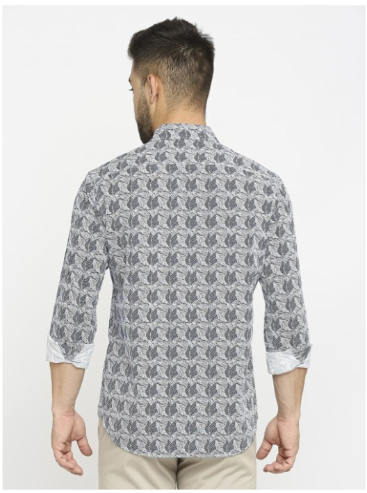 Blue abstract printed opaque Casual shirt ,has a spread collar, button placket, 1 patch pocket, long regular sleeves, curved hem