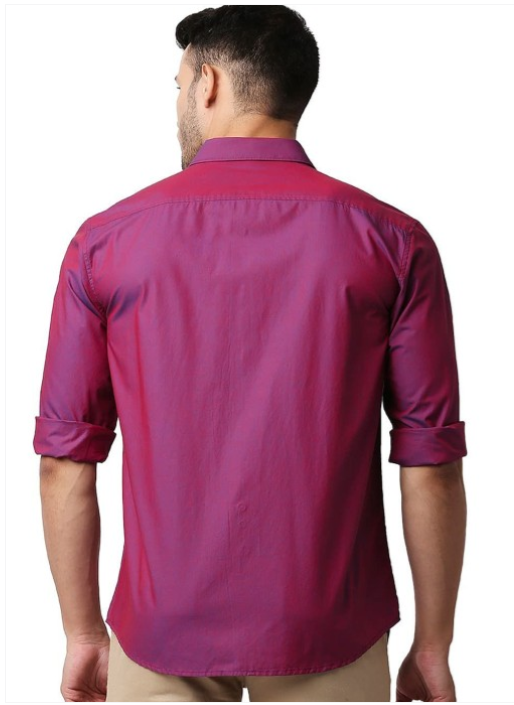 Pink solid opaque Casual shirt ,has a spread collar, button placket, 1 pocket, long regular sleeves, curved hemline
