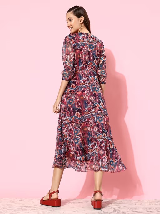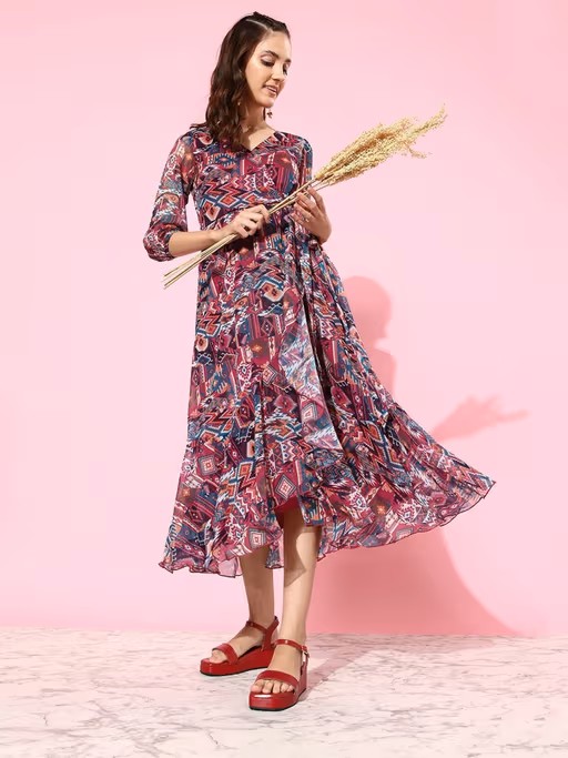 Women Multi-Color Three Fourth Sleeve Wrap Midi Dress. It is designed to ensure optimum room for ease of movement. It is sure to fetch you compliments from all. Join the league of fashion elites flaunting the staple.