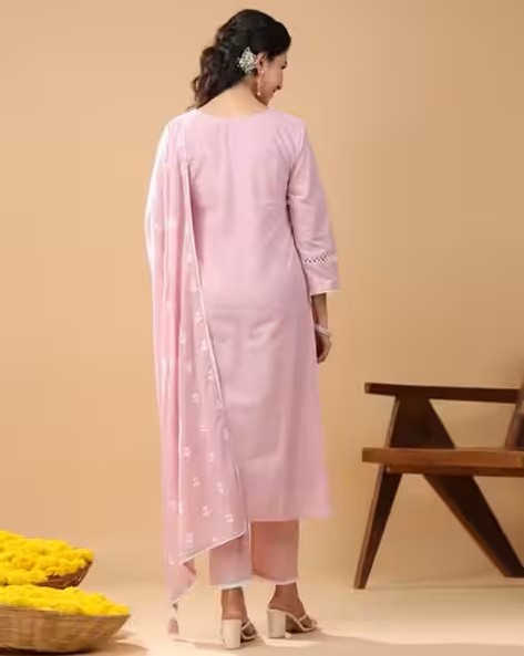 Women Floral Print Straight Kurta with Pants & Dupatta Set
