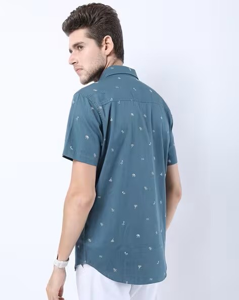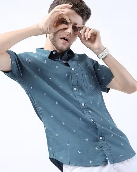 Micro Print Slim Fit Shirt with Patch Pocket