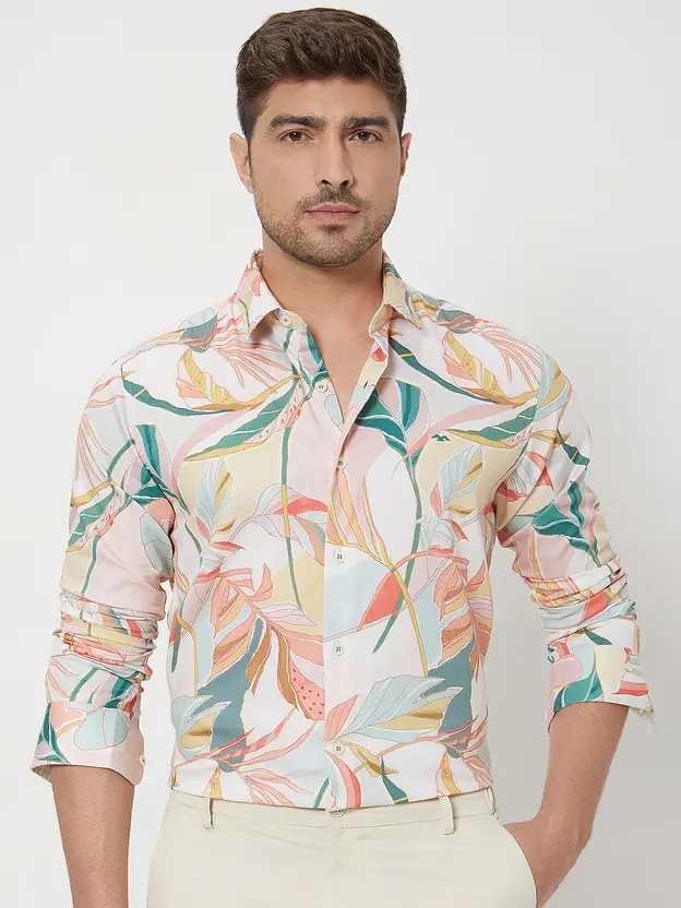 Men Slim Fit Printed Spread Collar Casual Shirt