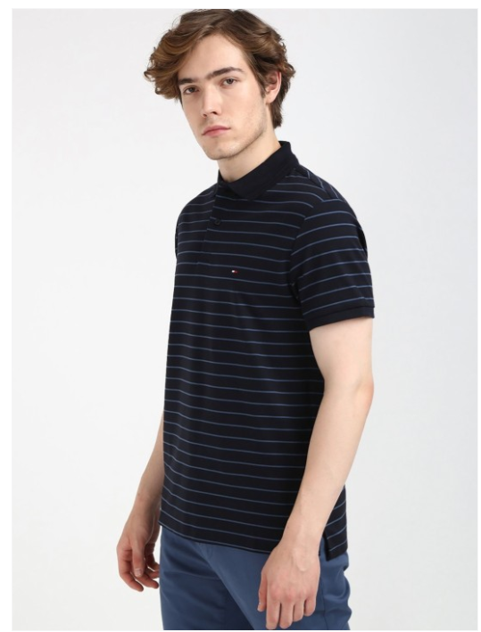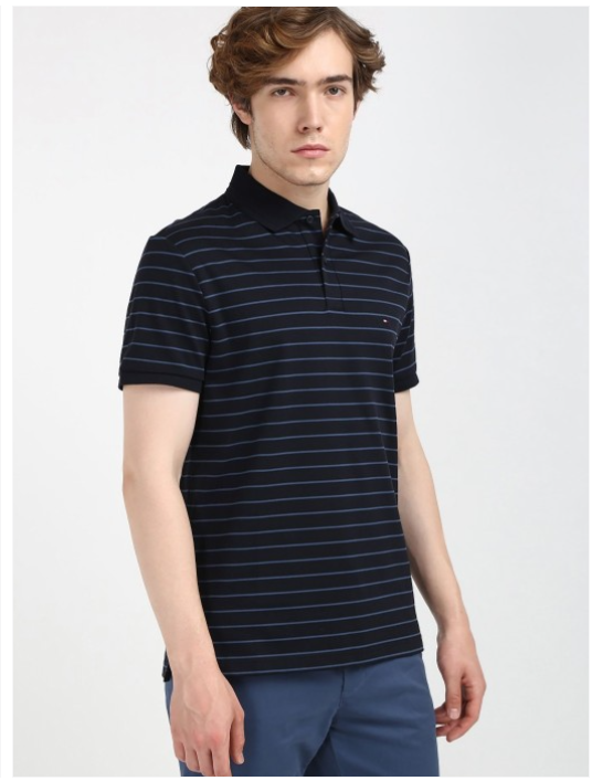 Men Striped Polo Collar Cotton T-shirt
