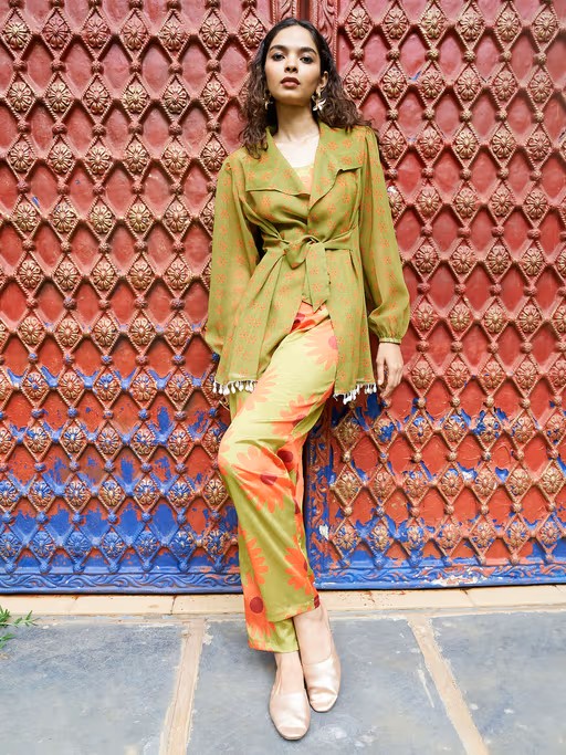Embrace The Elegance Of Qissa's Exquisite Co-Ord Set, Crafted with Your Utmost Comfort In Mind. Made From Lightweight Fabrics and Superior-Quality Solvents, This Ensemble Seamlessly Fits Into Your Everyday Wardrobe. Its Impeccable Construction Ensures A Perfect Fit. The Vibrant Colors and Enduring Shapes Promise To Maintain Their Allure Over Time. Effortlessly Pair This Co-Ord Set with Your Favorite Flat Sandals for A Relaxed Yet Chic Look, Whether You're At A Festival or In The Office. Reflecting The Latest Trends In Contemporary Ethnic Fashion, Qissa Elevates Your Style Quotient. More Than Just An Outfit, It's A Statement Piece That Sets You Apart with Its Dynamic Essence and Distinctive Personality. Versatile and Timeless, This Co-Ord Set Is Your Perfect Companion for Any Occasion, Year-Round. Each Piece Is Designed To Accentuate Your Curves and Boost Your Confidence, All Without Straining Your Budget. With Qissa, Celebrate The Essence Of Real Women and Their Femininity. Qissa'S Co-Ord Sets Are Essential Additions To Your Ethnic Wardrobe, Celebrating The Beauty and Strength Within Every Woman.