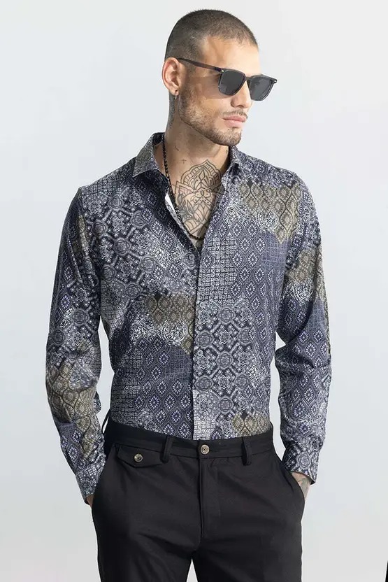 Men Slim Fit Printed Spread Collar Casual Shirt