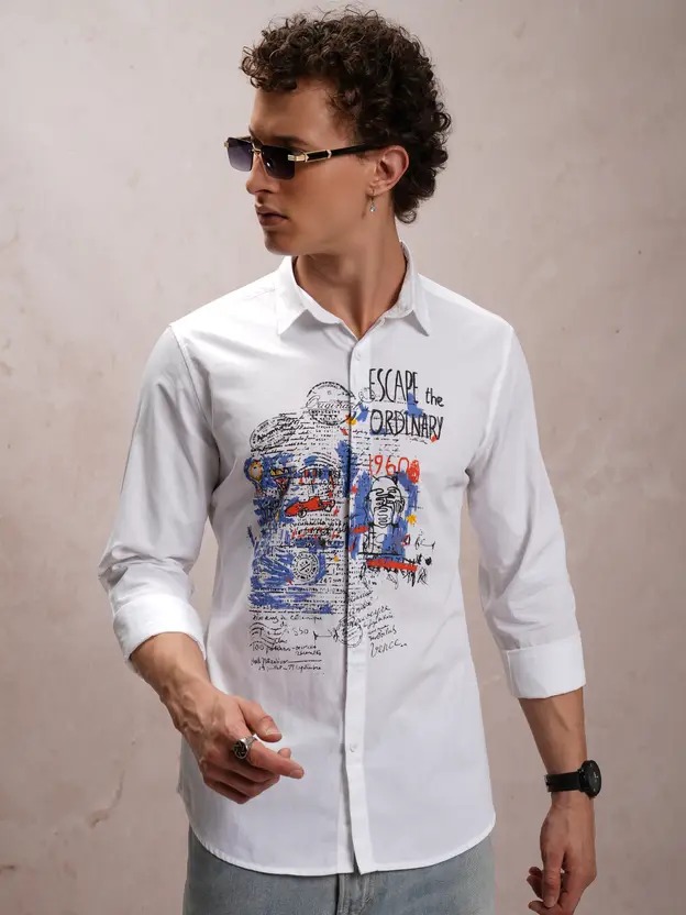 Men Relaxed Fit Fit Printed Spread Collar Casual Shirt