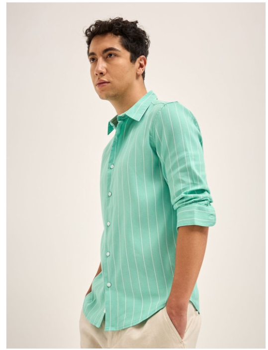 Green & White opaque casual shirt