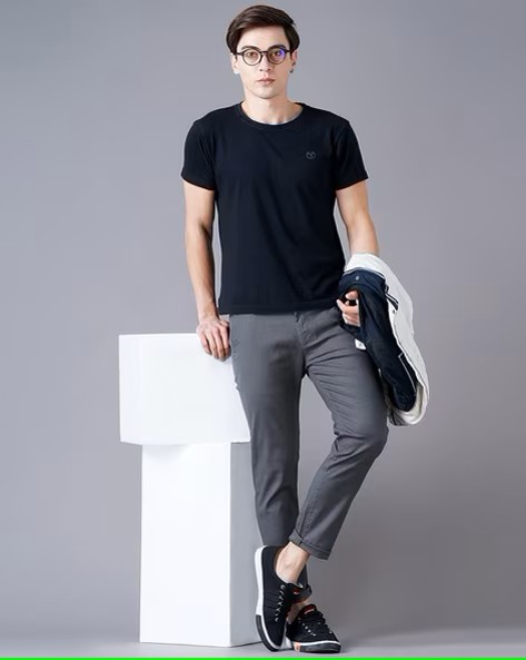 Slim Fit Flat-Front Trousers with Insert Pockets