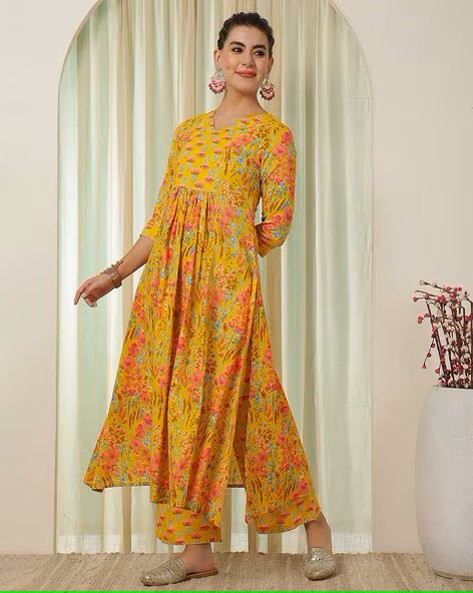 Printed Cotton Calf-Length V-Neck Co-ord Set