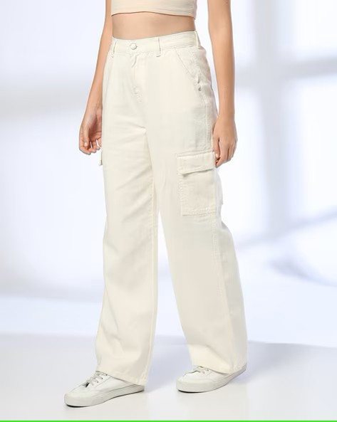 Women High-Rise Wide-Leg Jeans with Cargo Pockets