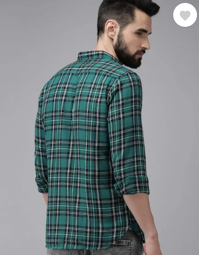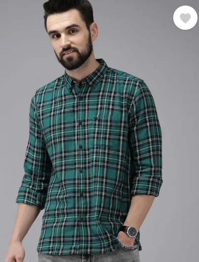 Men Slim Fit Checkered Button Down Collar Casual Shirt