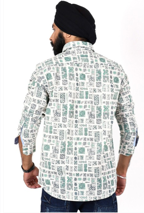 Off white brand logo printed opaque Casual shirt ,has a cutaway collar, button and loop, 1 patch pocket, long regular sleeves, curved hem