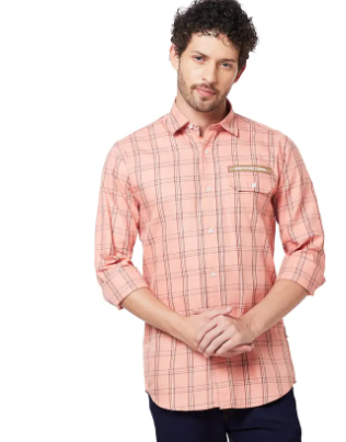 Men Slim Fit Checkered Spread Collar Casual Shirt