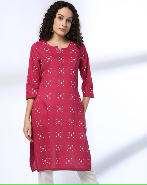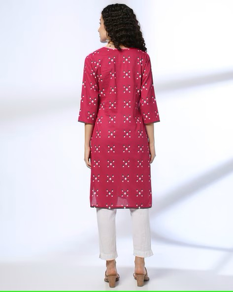 Women Geometric Print Cotton Straight Kurta