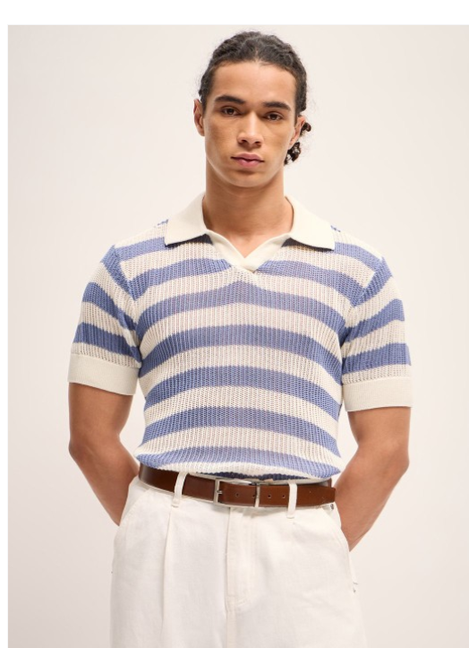 Self Design Striped Relaxed Fit Polo Collar T-Shirt