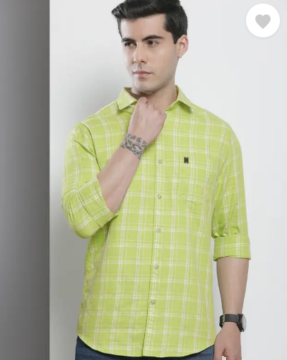 Men Slim Fit Checkered Spread Collar Casual Shirt