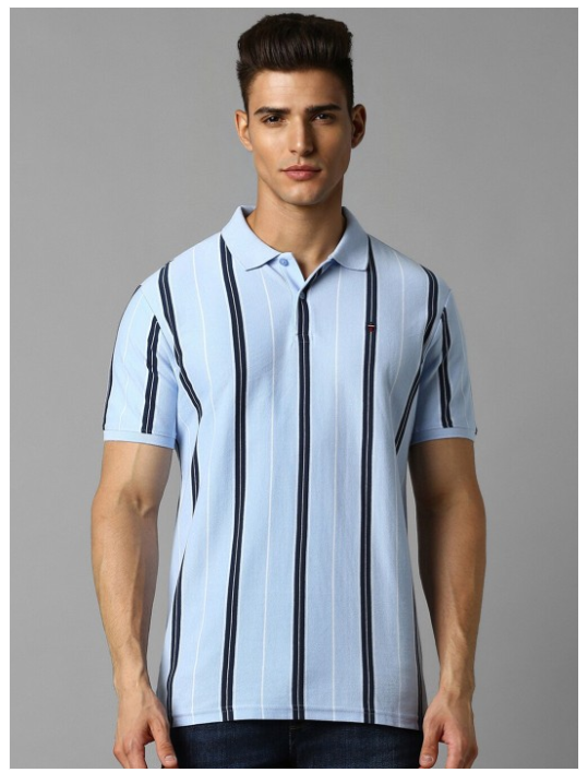Striped Short Sleeves Cotton Polo Collar Slim Fit T-shirt