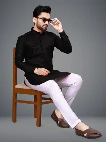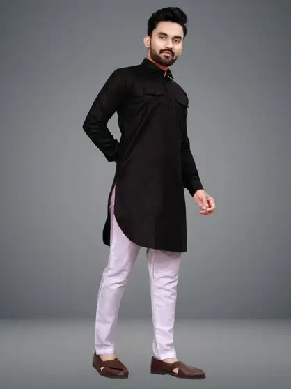 Men Solid Kurta (Black)