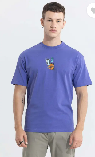 Men Printed Round Neck Cotton Blend Blue T-Shirt