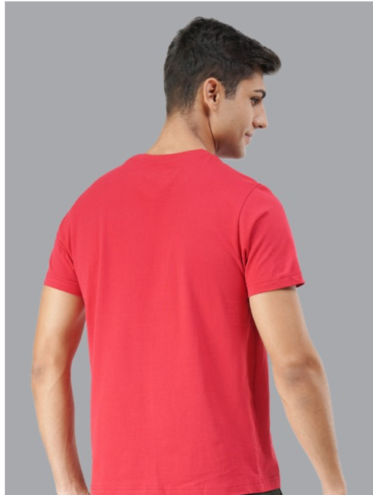 Red, black and white colourblocked lounge t-shirt, has a round neck, sleeveless