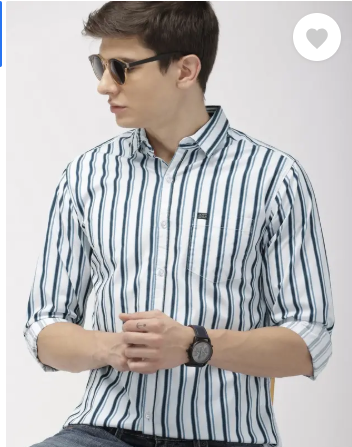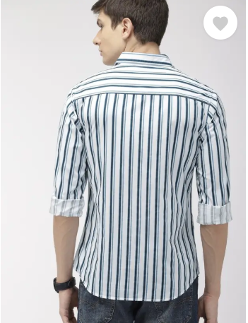 Men Slim Fit Striped Spread Collar Casual Shirt