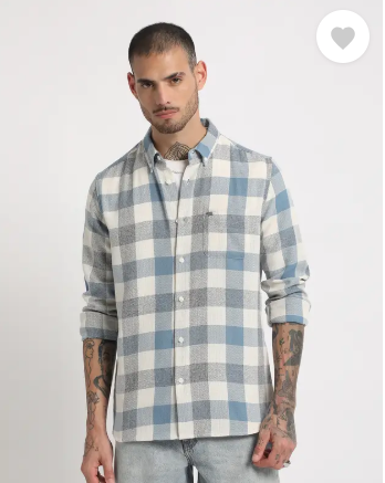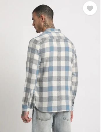 Men Slim Fit Checkered Button Down Collar Casual Shirt