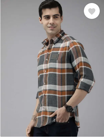 Men Slim Fit Checkered Button Down Collar Casual Shirt
