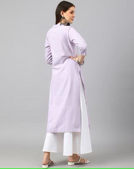 Women Striped Round-Neck Straight Kurta